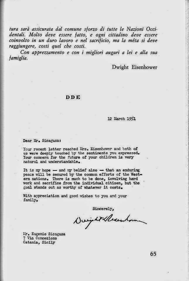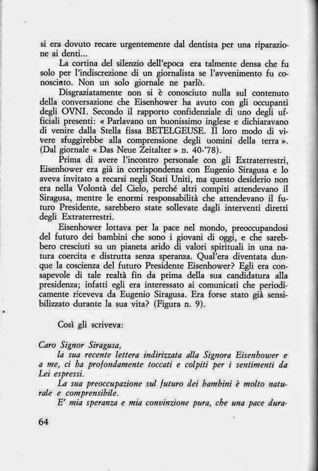 (*) In 1985, the newspaper Nonsiamosoli draws from the book » The Giants of the Sky» (*) published only in Italy, republishes extending it to the whole world, an important article on the contact that the American President » Ike» had had with a delegation of Extraterrestrial Beings belonging to the Interstellar Confederation in mission on our planet, for the salvation of mankind, and the epistolary conversation he had with the contacted Eugenio Siragusa. The President Ike Eisenhower, had from the beginning -and on more than one occasion during his messianic mission-, an epistolary correspondence with Eugenio, sharing with him the primarily concern about Youth and what pertained to their future destiny. Remember that the President, in fact, had an encounter with extraterrestrials who conveyed to him that humanity would have 50 years of time to “put things in their proper place ,» and told him that he also would contact with their emissary : Eugenio Siragusa . That’s why the revealed mystery of how a humble shipper of Sicily at the 50´ had been in contact personally with the president of the United States.