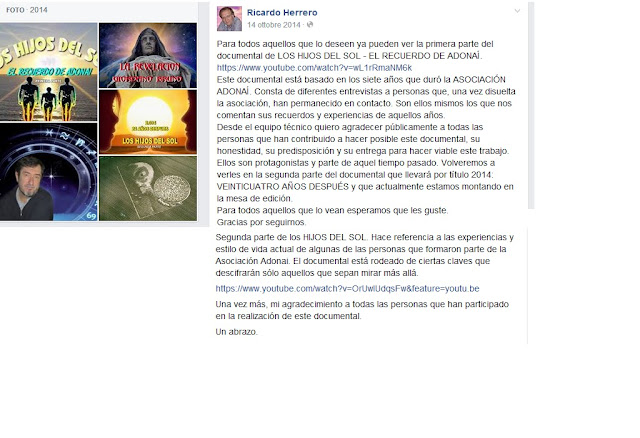 -Desde el cierre, en el 1978 , de la Asociación EstudiosFraternidad Cósmica que por cierto registró su actividad por medio del envío de su boletín a todos los estudiosos y medios de comunicación, con la autorización del gobierno ibérico -al número por O.M. con fecha 22-1976/ Num.15761- la Asociación Adonai, después de esa fecha del cierre de la operatividad de A. E. F. C. toma forma concreta y operativa. Antes de la Asociación Adonai, fue la de Asociación de Estudios Fraternidad Cósmica yhayquedesmentir lo que dice en el video entrevista sobre expuesto Lice Moreno, una «divulgacion» casi en «plandelincuente»…Es cierto, que todo lo que llegaba desde Italia por parte de Eugenio Siragusa, venía publicado en el boletín legal, reconocido por las autoridades españolas. Lice Moreno pertenecía idealmente a Fraternidad Cósmica, pero la divulgación de la OBRA de Eugenio Siragusa salía para toda el habla hispánica desde la ciudad de Vigo, en Galicia, a cargo del matrimonio Giuliana y Ramón Mouriño.