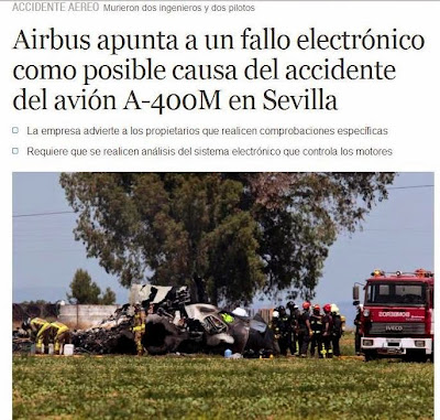 Airbus apunta a un fallo electrónico como posible causa del accidente del avión A-400M en Sevilla